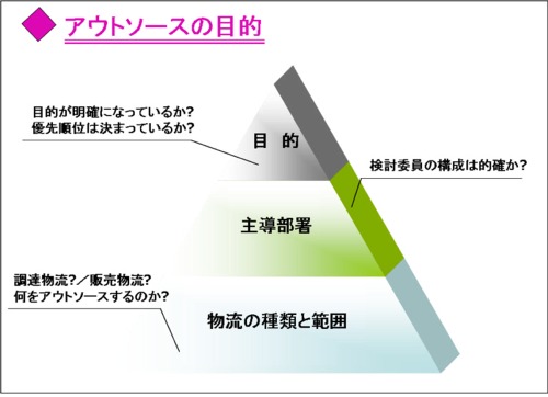 コスト変化はどうなるか。アウトソースによるメリット/デメリットは何か。将来の物流設計は。売上が大きくなった時に対応可能か、等の説明が必須です。