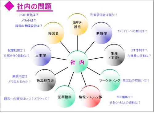物流課題の解決は、「物流企業と相談して進める」、「見積書・提案書をもらう」、もしくは「部門内で検討する」ことで解決可能ですが。社内には非常に大きなハードルが沢山あります。ここでは、9つの問題を挙げてみました。