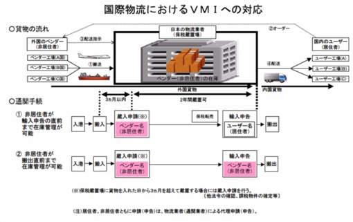2003年2月7日に国会に提出された“関税法の法改正案”が2003年4月1日より施行され、関税法95条(税関事務管理人)が新設された。この法改正は「国際VMI」のために行われたと言っても過言でないであろう。また、DDUやDDPに対応するための法改正であるとも言える。