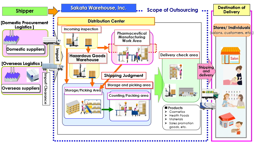 - Sakata Warehouse’s EC logistics and 3PL services are targeted at companies in the hairdressing and cosmetics industries.