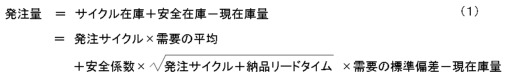 =予測需要量+予測外れをカバーする在庫量-現在庫量 (2)