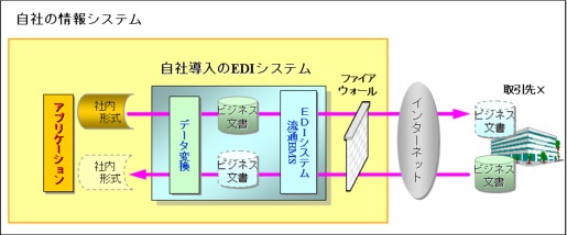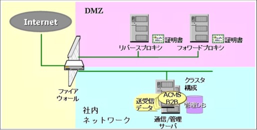 中規模でのサーバ運用の場合、社内にEDIサーバを置くだけの形態が考えられます。このようなときでも、外部からのアタックを社内に受けないようにしなくてはなりません。そのためにはリバースプロキシというシステムを導入する必要があります。これはかなり技術的な要件になりますので、別途セキュリティ専門のご担当者にご相談ください。