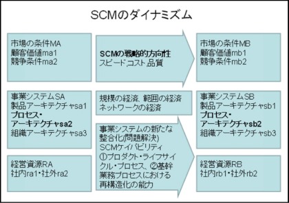 結局は先程、事業変化ということを言いましたが、現行の事業システムというものがあると、それは市場の条件・経営資源の関係というものは常に変化をしているので、これを作り替えていかなければならないということです。このSCMというのは、私は製品や組織とそれを実現するプロセスの設計の3層で考えるべきだと考えているのですが、それが常に作り直し続けるということがSCMの戦略性ということになると思うのです。