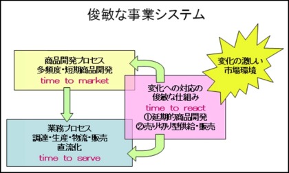 1つは、市場ニーズを発見し、それを早く商品や製品に具現化して市場に投入するために要するリードタイム(time to market)。