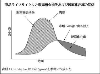 先程、商品ライフサイクルが短縮化しているという話をしました。昔は、なだらかなPLC(product life cycle)だった訳ですね。これがわっと流行って、ボンと廃れてしまうようになった。PLCの短期化です。そうすると実は2つの無駄が同時に発生するのです。1つは販売機会損失。とにかく店頭にならべなければ売れないじゃないかという話と、もう1つはダラダラやっていることによって、もう流行が終わっているものの在庫を持っている、陳腐化ですね。この2つの無駄というものは、実は同じ原因から発生しているのです。