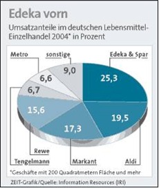 Edekaグループは、ドイツ食品小売り市場で26%の市場占有率を保持するドイツ最大のスーパーマーケットである。設立は1898年である。創立の根元は、ボランタリーチェーンである。Edeka Zentrale AG社の傘下に多店舗を有する独立したスーパーマーケットからなるいくつかの協同組合から成り立っている。本部はハンブルクにある。小さな街角の店から超大型の店舗まで、Edekaの暖簾を掲げた店舗はおよそ4,100店ある。現在の店名Edekaになったのは1913年である。