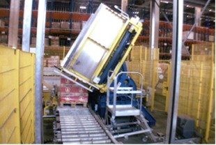 納入商品の荷姿は大部分フルパレットである。電動パレットローダーでトラックから下ろし、入庫コンベヤに載せる。パレタイズ貨物の3辺をチェックし、荷札のバーコードをスキャンして、自動倉庫に格納する。ヨーロッパはパレットプールレンタルが発達している。トランプのババ抜きのようにジョーカー(悪いパレット)を受けた場合、受けたDCで新品に取り換えるか、修理する義務がある。入荷の時にパレットをチェックし、パレットを交換する。不良パレットの荷受ラインが特別にあり、このラインにパレット自動交換機がある。パレットに問題がある時はパレットを交換して自動倉庫に格納する。