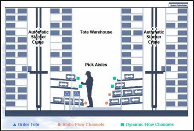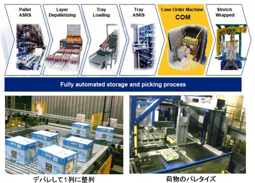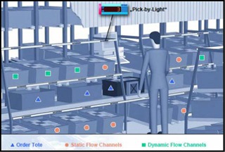 その後、卸売業に普及し、物流現場では重要なピッキング装置になっている。スロット(間口)数は1,500、ピッキングラックの後ろには補充用のミニロードがある。ラインを10人で分担、リレー式、Aグループはピッキングし易い高さの棚に置く。B,Cグループは下の段、ピッキングのコンテナ搬送コンベヤは段と段の間に置かれている。DPSのデザインは日本でもよく見られるが、新しいだけに完成度は高い。
