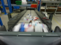 コンテナは容積がら商品の量が計算されピッキング量が決められます。通常バーコードを使って管理し、コンピュータがコントロールする。商品のスタッカーの下部に切り出し装置があり、ダルマ落としのように商品をコンベヤの仮想空間にはじきだす。1ロットのピッキングが終わる前にコンテナがコンベヤの末端に来て、商品を受ける。