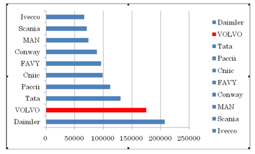 ボルボトラックの本社はスウェーデン第二の都市イエテボリ(Gothenburg)にある。創業は1927年、事業はトラック、バス、建設機械、船舶用エンジン、航空宇宙機器である。従業員10万人主要生産車種F10型、P12型、F16型、札10型、札12型、単車(普直トラック)60%、トラクター40%。生産は年間8,000台(ボルボ全体では55,000台)輸出比率80%、内、北米約30%、重量トラックではベンツに次いで世界第2位である。組み立てラインは通常タイプ・特車ラインの2ラインであるが2007年夏は1ラインのみであった。ボルボ社は6トン以上のディーゼルトラックを生産しているが得意な分野は重量トラックで、最大44トンのトラックを生産している。近い将来には60トントラックの生産を開始すると言うことである。乗用車は1999年にフォードに売却し、フォードはリーマンショック不況でボルボカーズを中国に売却する交渉を進めている。