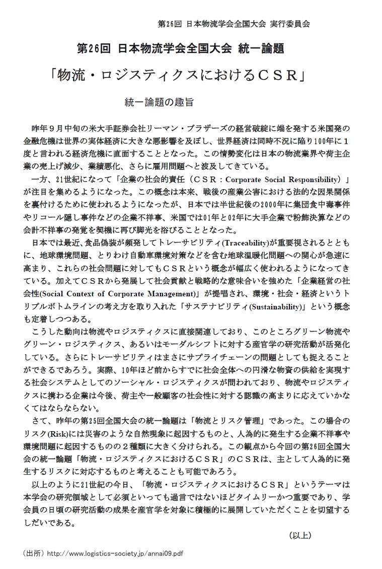 *画像をClickすると「物流・ロジスティクスにおけるCSR」http://www.logistics-society.jp/annai09.pdfの内容が見られます。(下段の緑色の矢印ボタンを押すとフルサイズで表示されます)