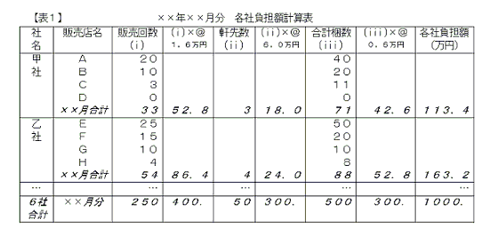 Cに「当月の各社ごとの(i)・(ii)・(iii)の数」を掛けて、各社ごとの負担金額を算出する。