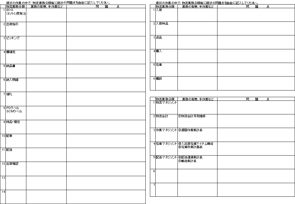 多くの問題点をこのシートに書き込んでいくと、空白の欄(例えば、棚卸)があった場合は、問題点が無いのか、もしくは、検討していないのかわかる。