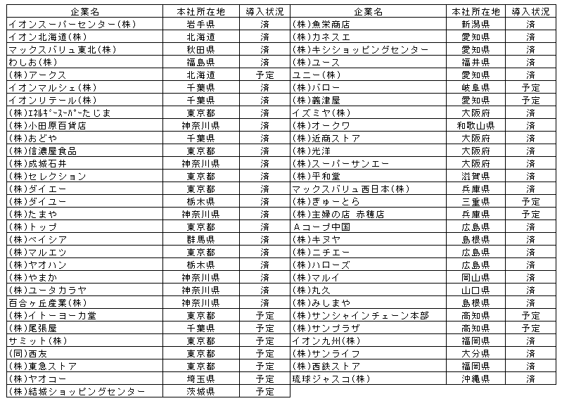 スーパー以外では、百貨店、ドラッグストア、ホームセンター、生協、Aコープで導入の動きが見られる。