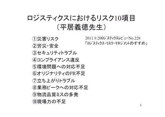 ロジスティクスにおけるリスク10項目(平居義徳先生)