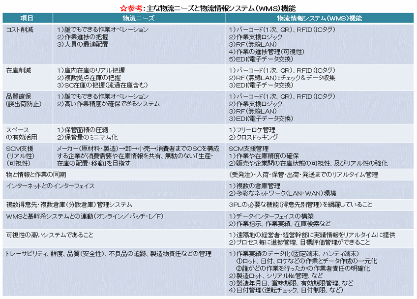 1)物流情報システム(WMS)を核にした物流センターの基本機能が多くなりました。
