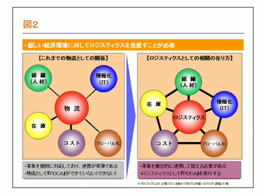 これこそが先述したフレームワーク(図1参照)を実現するための基盤と言えるのである。また、この体制を支え、具現化することがロジスティクスにおいて独自にPDCAを実現・定着し、企業経営に対して重要な機能を果たすことになるのである。
