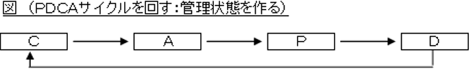 物流業務ではサービスという眼に見えない品質を向上させるので、データ収集による現状の定量化が不可欠である。これができなければ手探りで改善を行うようなもので、時間ばかりがかかってしまう。流通工程ではこれが非常に難しいとされているが、この「見える化」が活動の動機付けとなりその突破口になる。そしてもう一つはトップダウン活動との組合せである。現場の自主活動を期待するだけでは、改革には中々繋がらない。PDCAサイクルを回していきなり管理状態を作れと言っても難しく、データをとってチェック(C)から入った方がやりやすい。(図参照)