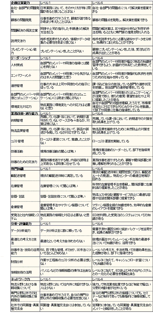 厳しい経済環境下、コスト削減やサービスレベルの向上といった競争力強化にむけて、物流が注目されて久しい。しかし、物流に携わる人材に必要な能力要件について、定義したものは非常に少ない。多くの企業では、「額に汗し、長時間働く」、「緊急出荷など無理を聞いてくれる」というような人が高い評価をされているのではないだろうか。