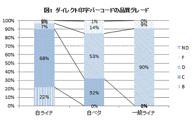 二つめのテーマは、印刷品質がグレードDの属性情報バーコードでも、企業間の流通に利用できる水準について、何らかの指標があるかを調査することである。