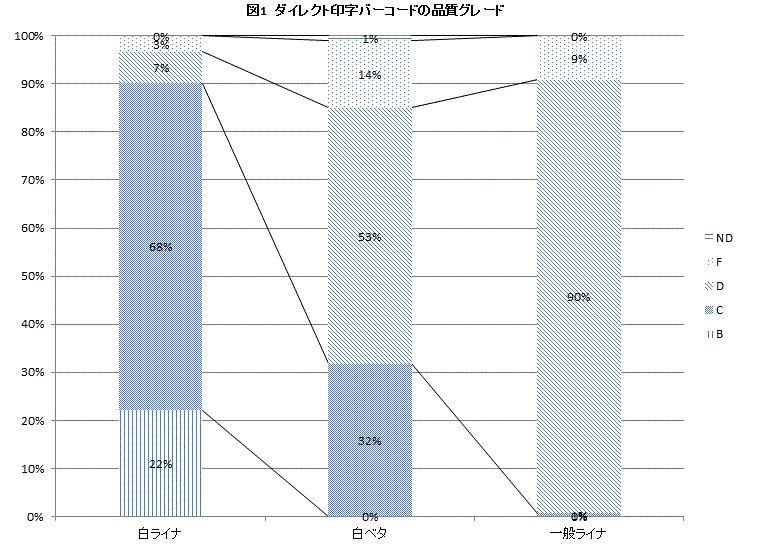 二つめのテーマは、印刷品質がグレードDの属性情報バーコードでも、企業間の流通に利用できる水準について、何らかの指標があるかを調査することである。
