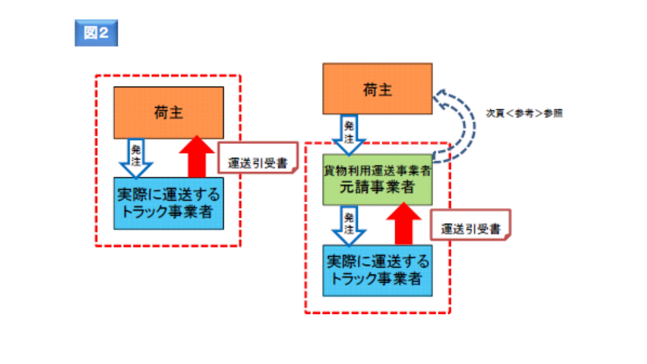 荷主には、利用運送事業者(元請運送事業者)や物流子会社も含まれるが、元請運送事業者と下請運送事業者間においては、既に「下請法」の規定により書面の交付義務が定められている。