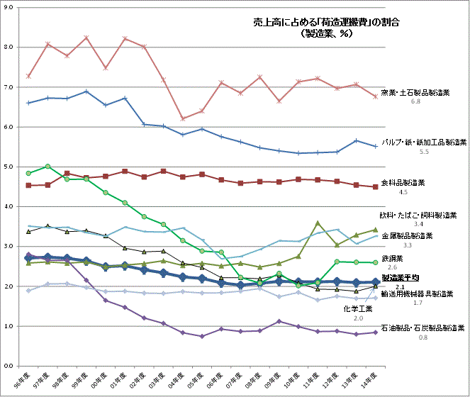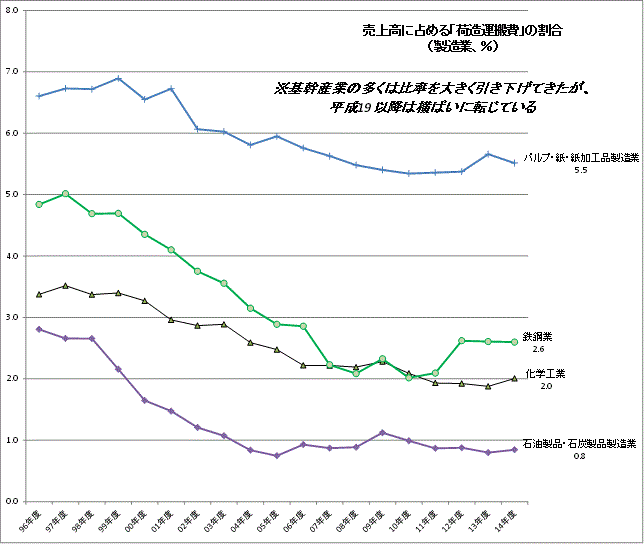 よってこれらの外部要因を除くと、物流コスト比率はこの間、傾向的に下落しているとは言えず、安定的に推移していたと推察される。