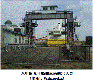 ところで、一口に「車両航送」と言っても、簡単なことではない。貨車を船に積み込むには、陸上のレールと船の甲板に敷かれた線路を接続しなければならない。船の運航に支障のないよう、船の到着に合わせていち早く線路を接続し、貨車の積み換えが終わったら速やかに線路を切り離すことが求められる。停泊している船は波で前後左右に、潮の満ち引きで上下に動くので、本線と船の線路との間には揺れを調整する緩衝レールも必要だ。