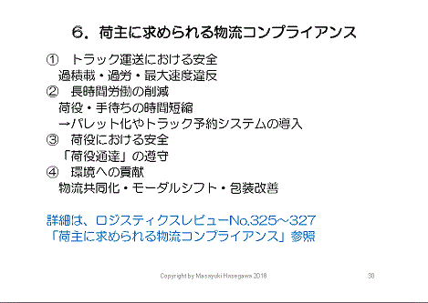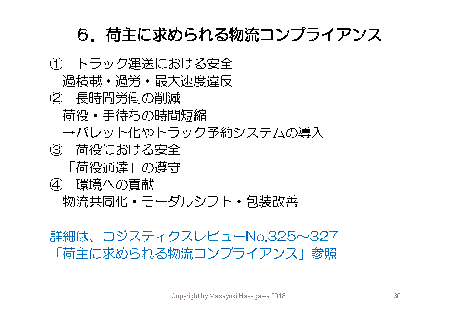 「荷主に求められる物流コンプライアンス」については、私が一作年にロジスティクス・レビューで書かせて頂いたので、関心のある方はバックナンバー325号~327号(/logistics-325/, /logistics-326/, /logistics-327/)をご覧下さい。