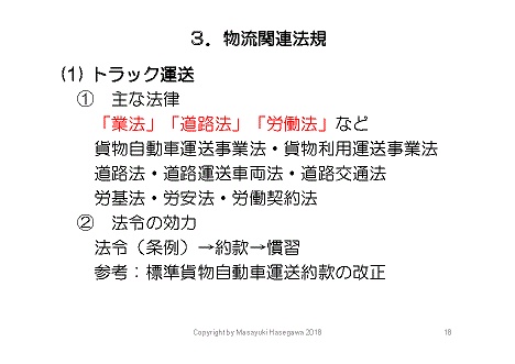 物流関連法規には、先述した「業法」、あるいは「道路法」「労働法」など、さまざまなものがあります。