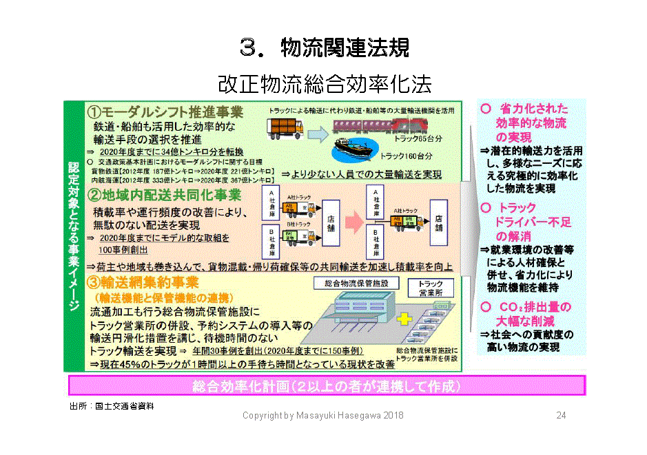 そこで2016年に改正されて、ハードだけではなくて、「モーダルシフトによってドライバー不足に対応する」、あるいは、「共同配送システムで、トラックの積載率を向上する」「輸送網を集約する」というソフト面も、認定対象に追加されました。