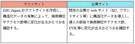テストサイトにおける実証では、GS1 Web Vocabularyの構造化データを挿入したテストサイト実証参加企業が扱う実際の商品を掲載するwebページを作成した(https://gs1japanss.org/)。
