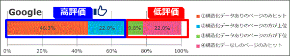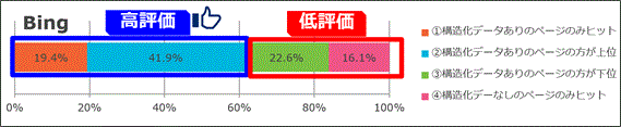 テストサイトによる検索順位検証の結果はGoogle検索の場合68.3%の割合で、Bingの場合は61.3%の割合で構造化データを含むGS1 Web Vocabularyが挿入された商品ページの方が、検索エンジンから高い評価を受けた。