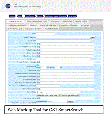 GS1 Web Vocabularyの標準仕様は、GS1のwebサイト上に無料で公開されている(https://gs1.org/voc/)。 項目一覧と導入ガイドラインが公開されている他に、”Web Markup Tool for GS1 SmartSearch”として、簡便に構造化データのコードを生成するwebアプリが提供されている(https://www.gs1.org/1/smart-search-demo/)。