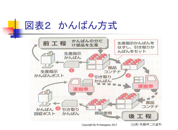 「トヨタかんばん方式」は、図表2で示した通りであり。「かんばん」がなければ「運ばない」「作らない」ので、在庫が極小となる。