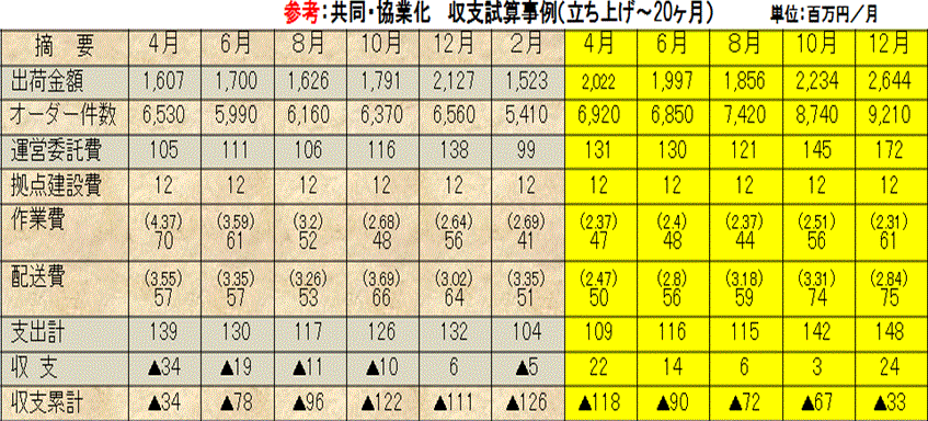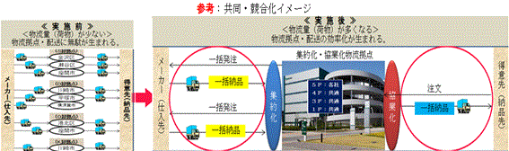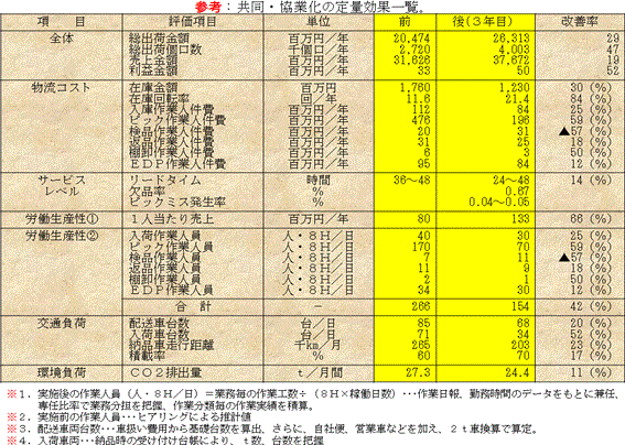 共同・協業化の実施前と実施3年後の効果は、共同・協業化で物流量を束ねたスケールメリットの効果が現れていました。