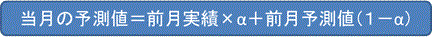 そこで季節変動を反映させるよう筆者なりに変形した指数平滑モデルの算出式が下記である。
