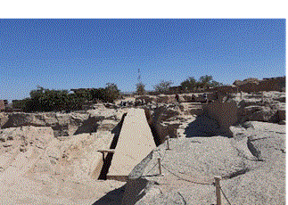 中部ルクソールにある王家の谷と呼ばれる墳墓群では、60余りの地下式のものが発掘され、見事なレリーフが極彩色で描かれており、その年代の経過を感じさせない。この乾燥状態だからこそ、画質は維持されてきたのだろう。これらの造形や描画彩色の素晴らしさもさることながら、これをどう制作し据え付けたものか。原材料が採石場で加工されたものか、建造の現場で行われたのかも分からない。南部アスワンには石切り場があり、40m以上にも及ぶオベリスクが採石途中で放棄されたままになっていて、総重量は1千tを超えるとされている。作業の過程でヒビ割れが起こり、使えなくなってしまったのだと言う。