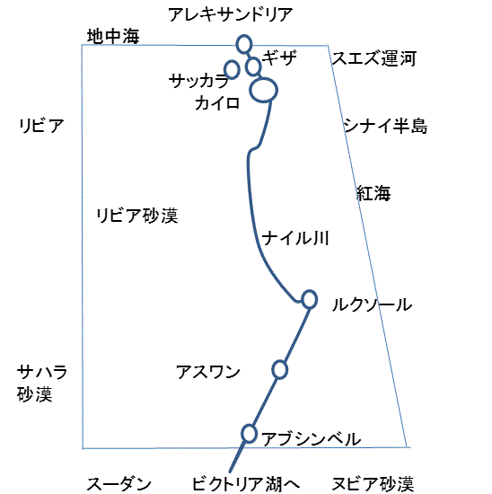 今から凡そ5千年前頃より始まった世界四大文明の一つ、エジプトの巨大遺跡は一体どのようにして建造されたのか。そのことが旅の間中、いつも頭から離れなかった。一辺が200m余り・高さが140m超にも達するピラミッド、40mも聳え立つオベリスク(尖塔)、神殿の高さは20mにも及ぶ。これらの素材は比較的柔らかな砂岩もあるが、硬い大理石・花崗岩も使われている。砂岩は砂漠の中のどこにでもあるが、硬い石は産地が限定される。それはカイロから南へ1千Km以上も離れた場所でしか採れず、全てナイル川の水運により各建設地へと運ばれた。