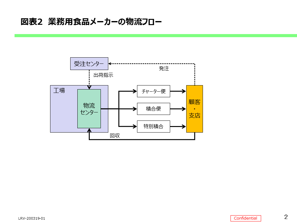 次は、冷凍食品メーカーの事例をご紹介します。こちらの企業は、コストダウンの切り口が知りたいというとてもストレートなニーズをお持ちで、そのために全体を見る物流診断を行うこととなりました。