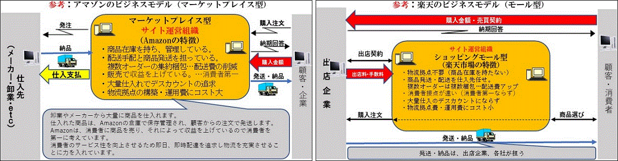 それぞれのECサイトはビジネスモデル上、全く違う形態を取っています。