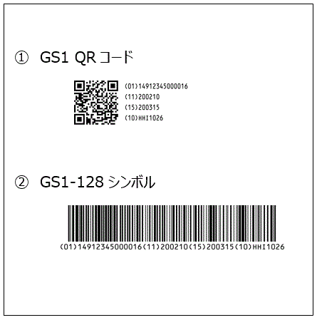 GS1-128シンボルは、海外への輸出や輸入品を考慮して推奨シンボルに加えています。GS1標準では二次元シンボルの利用条件が、原則「一次元シンボルの追加シンボル」とされているためです。国内流通では、GS1 QRコードで問題ありませんが、海外に輸出する際は、相手先によっては、一次元シンボルの表示を求められる可能性があります。
