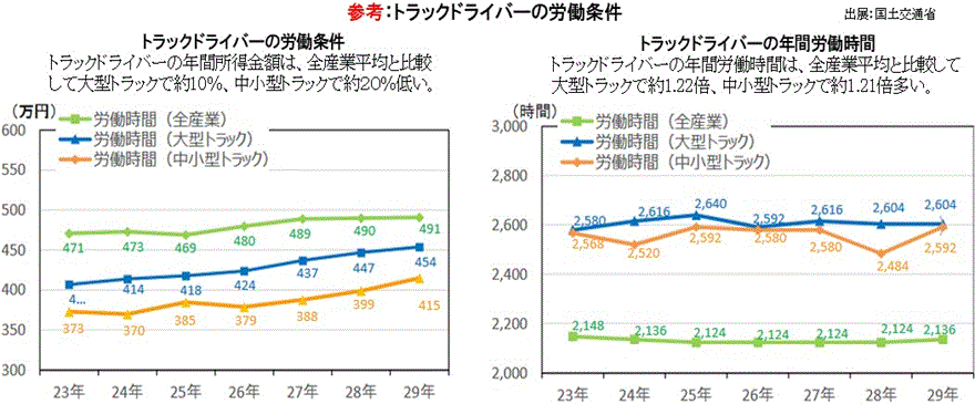 コロナ禍で、一時、ネットスーパー各社が受注の一時停止を公表しました。農水相は「食料については、安定的な供給体制が万全なこと、十分な供給量が確保されていること、買いだめ、買い急ぎは必要ありませんと発表しました。さらに、同省のコロナ対策本部も全国民に米の消費量約半年分、小麦2カ月分以上を備蓄しているとのこと、国民の不安払拭に努めていました。大手宅配業者の関係者は、原因の一つにドライバー不足を上げていました。さらに、生産地から市場までの物流ラインでのドライバー不足が深刻化して思うように荷物を運ぶことができないことがあったとのことです。最近、ドライバー不足に起因した新たな輸送手段をTVや新聞で見かけるようになりました。外出自粛によって人々の移動が制限されているためタクシーの乗客は激減、宅配事業と地域の交通インフラの活性化を目的にタクシーでの貨客混載が開始されています。さらに、楽天は、路線バス網を活用した貨客混載輸送を行うと発表、SGホールディングス傘下の佐川急便とJR北海道は、新幹線を使った宅配便が北海道や九州などで実用化の段階に入ったとしています。旅客車両の空席を活用した貨物を運ぶ貨客混載の形式は、トラックの運転手不足や移動制限による新幹線の乗客数低下の策としても期待されています。貨客混載が話題性だけでなくドライバー不足の解消につながることを期待したいものです。2020年6月のトラックドライバーの有効求人倍率(常用・パート含む)は1.92倍と2倍を割り込みました。帝国データバンクの調査では、2020年4月時点における「運輸・倉庫」の人手不足は約40%で、1年前の約70%から大幅に低下しています。JILSのアンケートでは、約40%が「コロナ禍の前と比べてトラックの手配がしやすくなっているとのことです。さらに、約30%が作業員が余剰と回答しています。こうした需給バランスの変化が市況に影響を与えています。特にトラック運賃が下落基調です。スポット運賃の指標となる全日本トラック協会が開発した事業者のためのWebKIT(求荷求車情報ネットワークシステム)での運賃は、前年実績を下回って推移しているとのことです。長期的には、労働時間短縮が給与の低下につながらないような給与体系の改善が大きな課題となってくると思われます。コロナ禍で特に大きな打撃を受けているのは、実運送を担ってきた中小の運送会社です。元請けからの減車要請で仕事量が激減しており、時間外労働を巡っては、働き方改革関連法に基づきドライバーは2024年4月から年間960時間の罰則付き時間外労働の規制が適用されることになりました。また、2023年4月から中小企業でも月60時間超の時間外労働への割増賃金が50%となるとのことです。直近では、荷量減少に伴い自然と働き方改革への対応が進んでいる状況が伺えます。毎月の勤労統計調査(厚労省)によると、運輸関係の所定外労働時間は、減少をしているとのこと、3月の所定外労働時間が23.2時間、4月が21.4時間、5月は、17.2時間と大きく減少しているそうです。大阪府トラック協会によると4~6月の所定外労働時間(休日労働含む)が減少した割合が64%になったとのこと、輸配送1件当たりの個口数が少なくなっており、小型車だと従来比で30分~1時間程度、早く帰庫(車両保管場所)してくるそうです。荷量が少ないうえに道路がすいていることも理由のひとつだそうです。物流企業もコロナ禍を機に荷主からの「前日オーダー」が定着し、事前に車両予約が可能になり、出庫が効率化されたとのことでした。こうした背景もあってドライバーの時短が進んでいるようです。巣ごもりで宅配は伸長、企業間物流は振るわず、輸配送需要が低迷し、回復の見通しも不透明、雇用情勢にも変化が出てきているようです。