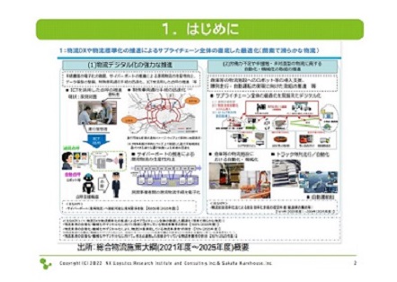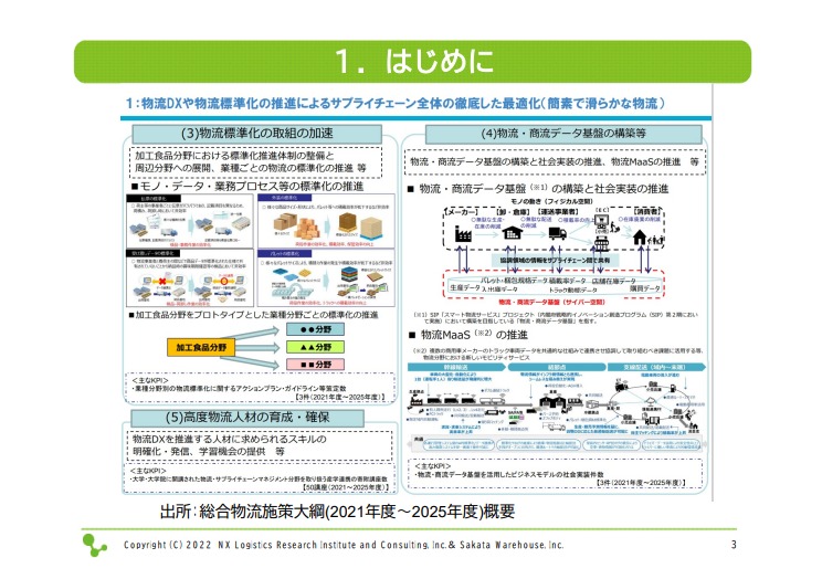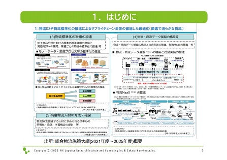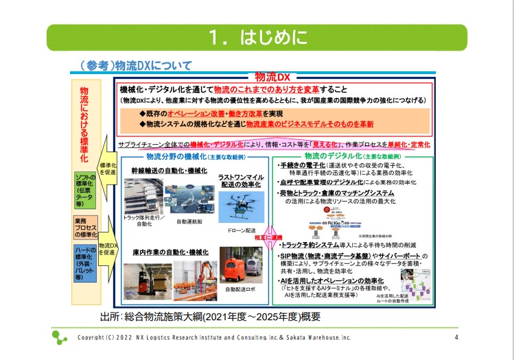 後ほど、物流MaaS (Mobility As A Service、物流分野における新しいモビリティサービス)や、国際的な取り組み状況についてもお話しします。