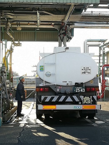 写真1 タンクローリーへの積込み作業