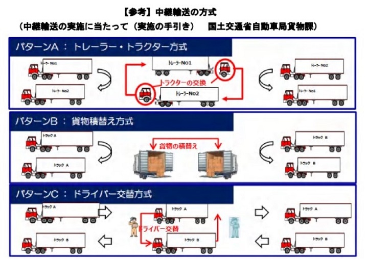 国土交通省では、中継輸送について「成功事例に学ぶ中継輸送成功の秘訣~中継輸送の取組事例集」により導入・普及を呼びかけている(図3参照)。