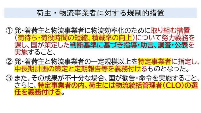 - 荷主・物流事業者に対する規制的措置