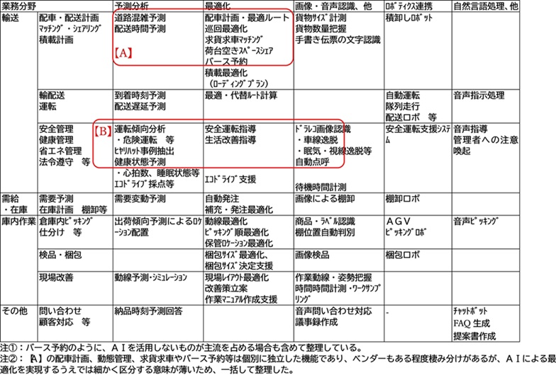 この中で、最も注目度の高い領域を一つ挙げるとすれば、図中【A】で示された、配車計画などに関連する分野であろう。