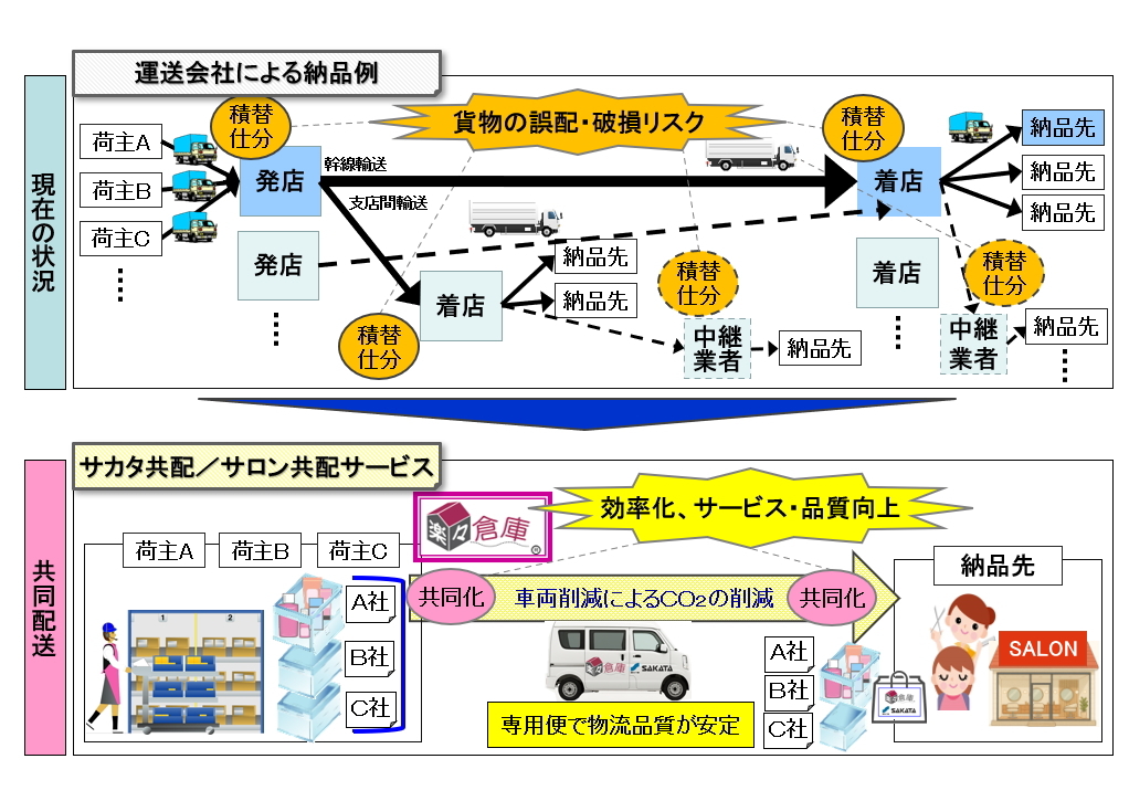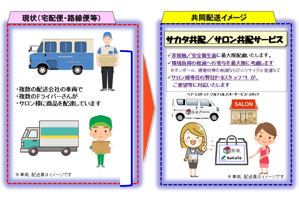 サカタウエアハウスの化粧品業界向けサービス「サカタ共配/サロン共配サービス」では、